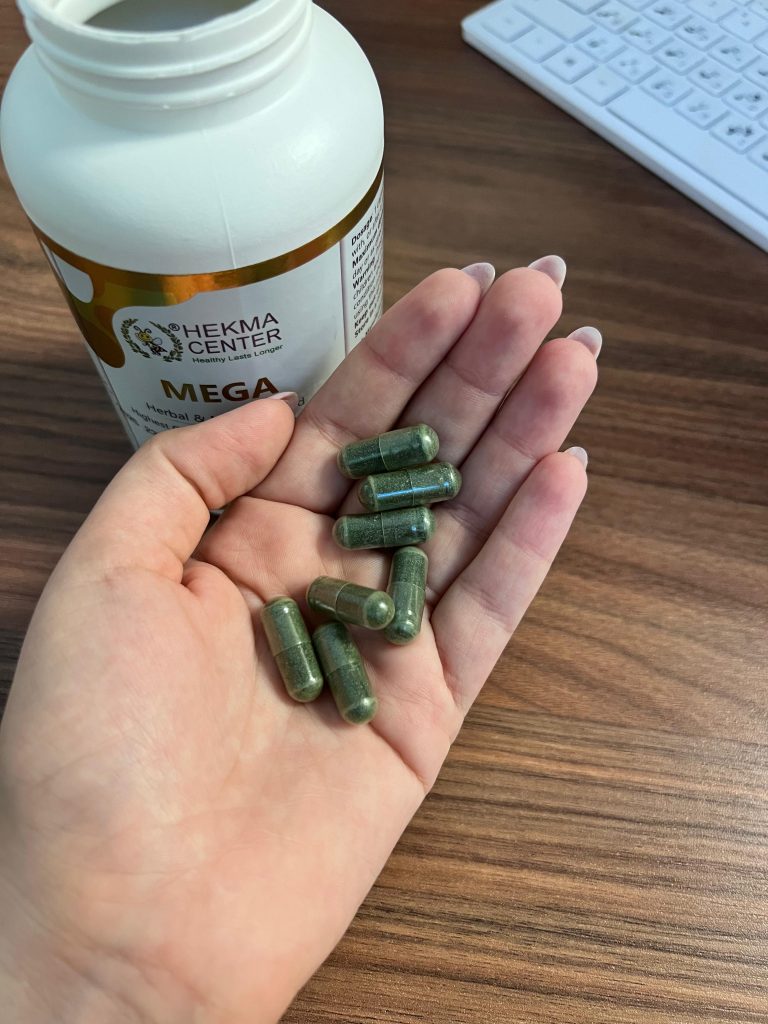 منتج ميجا هو مزيج من أعشاب ومواد طبيعية يحتاجها الجسم بشكل يومي. يساعد منتج ميجا على تعزيز صحة الجسم واستجابته السليمة، مما يساهم في دعم حيوية وإشراق شعرك وجعله لامع ينبض بالحياة، كثيف وصحي وقوي، كما يساهم في تقوية أظافرك وزيادة صلابتها وتجديد خلايا بشرتك واعطائها الحيوية والبريق والأشراق. تتكون التركيبة من عدد من الأعشاب، الفيتامينات والمعادن الممزوجة معًا. يحتوي هذا المنتج على اوراق نبتة المورينجا، طحالب السبيرولينا، الكبريت العضوي ام اس ام وزنك بيكولينات، والتي تعد من أهم السوبرفود القوية المغذية للجسم.