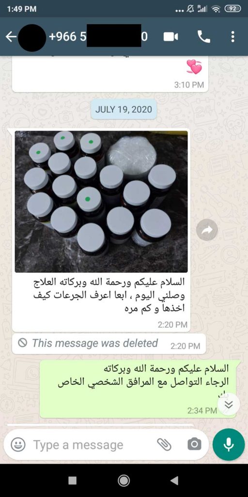 Ms. Aminah decided to try our wellness supplement package, and ordered it through Hekma Center website. She received the package on 19/7/2020.